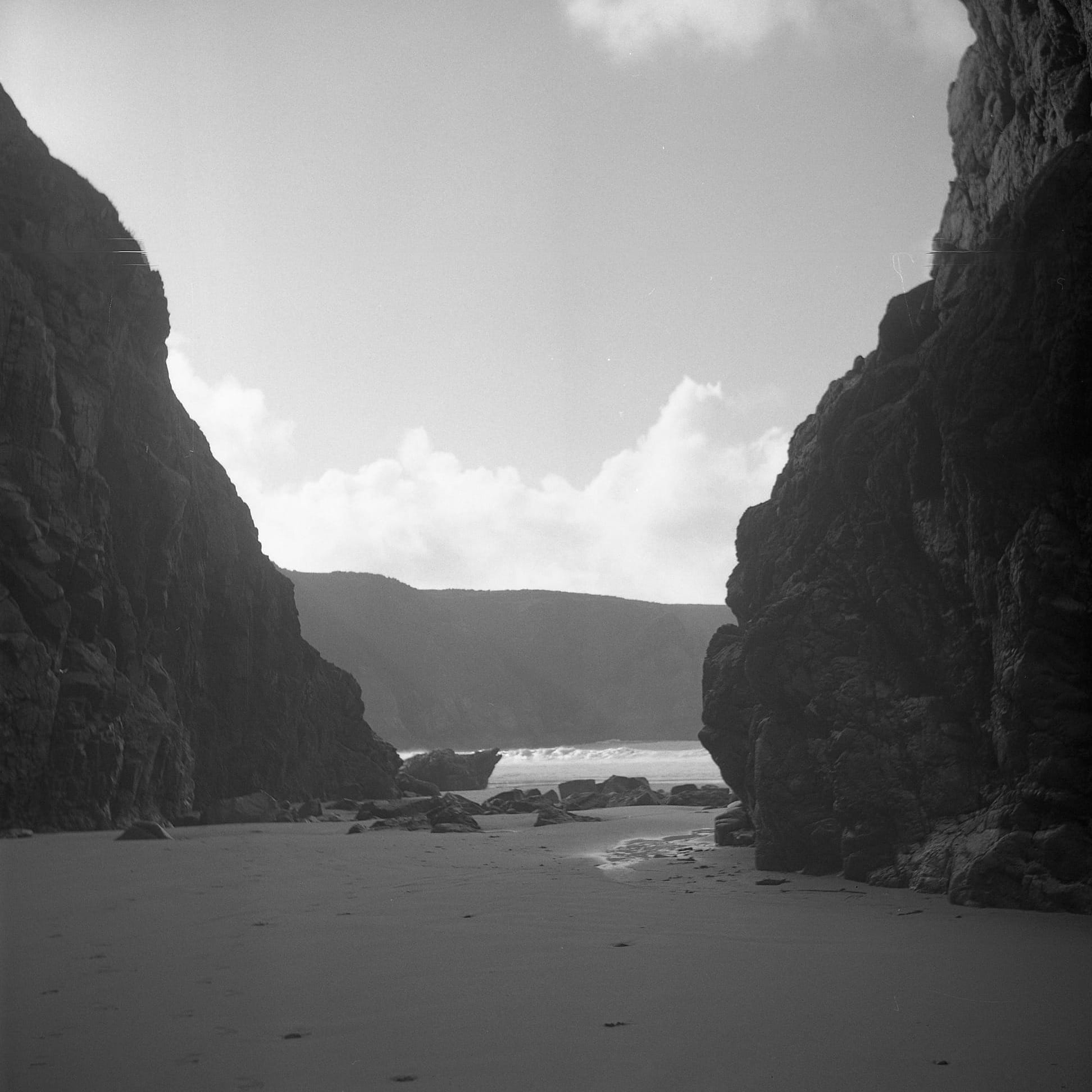 On the last full day in Jersey of my October visit, I was at Plémont on the North West corner of the island. The swell had picked up and we had spent our last couple days chasing and watching the waves, admiring their power and secretly hoping to get splashed. After exploring some caves it was time to go, I still had some shots left on my roll, I stood with my back to the sea and photographed the cliffs infront. Once again, I felt the familiar feeling of the camera's weight slip from my neck...The neck strap had come off and the Lubitel 166b was greeted by the beautiful peachy gold sand that had recently been doused by a wave. Wet sand everywhere. Have neck straps got a vendetta against me? Unfortunately, the fixed loop in the camera body that holds the neck strap had become brittle and snapped releasing one side of the strap. Well it was my last day and I had finished the roll so I brushed off as much sand as I could and called it a job for later on.