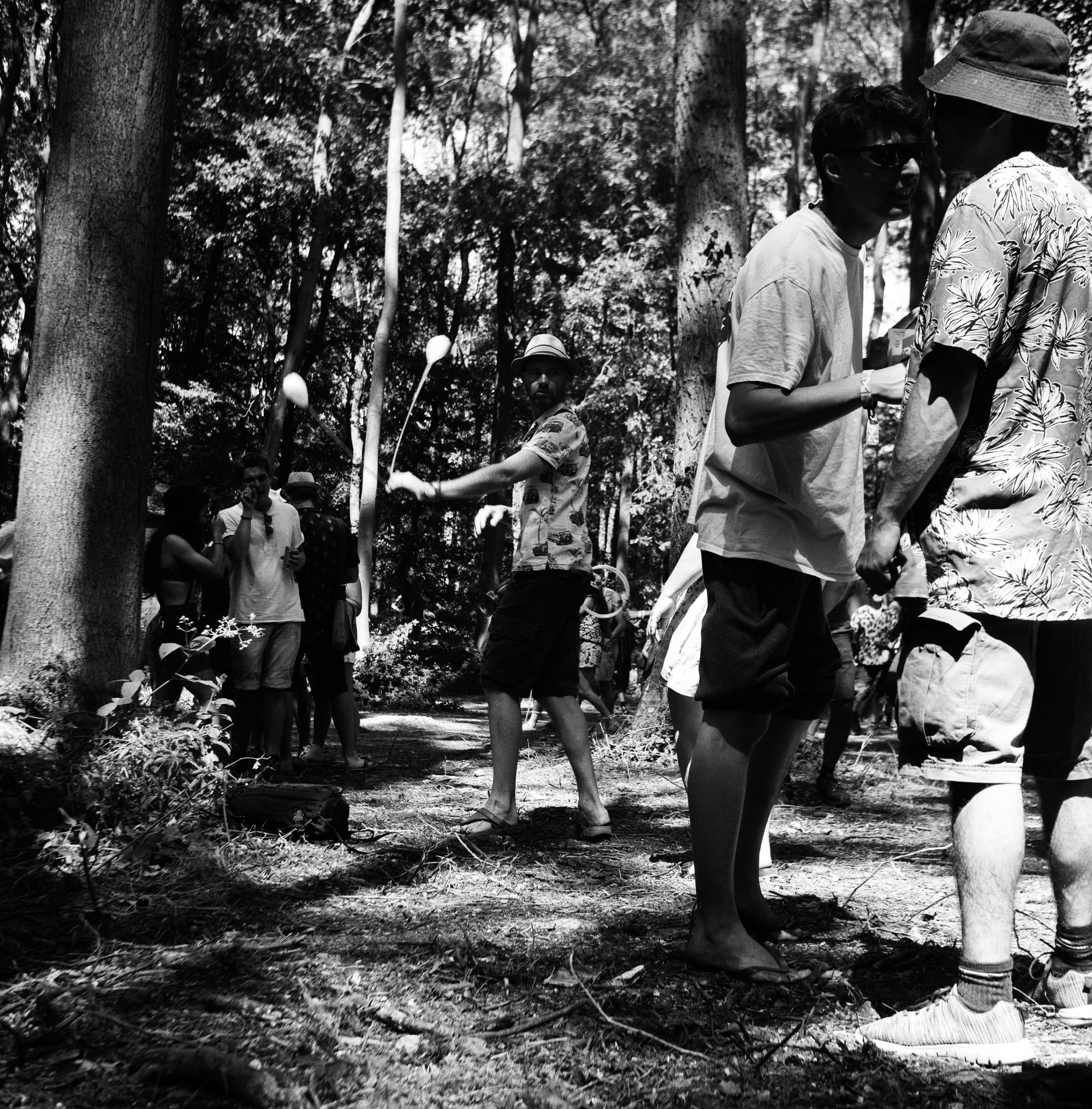 Photographing at a festival was going to challenge my normal minimalist style of shooting. With the combination of harsh shadows and highlights created from the dappled shade of the forest and the crazy festival – goer outfits, there was going to be nothing minimal about these shots. I often find comfort in photographing landscapes and architecture, street style photography has never really been something that called for me. One of the reasons being that when I photograph strangers I feel as if I’m intruding and I’m not very good at being inconspicuous so I always get caught in the act of taking their shot and it always ends up in a bit of an awkward to and fro. However, at a festival, no one gives a damn. They’re all too busy dancing with their faces to the sunshine, completely absorbed by the energy radiating from the speakers. I wanted to capture people that seemed to be lost in a different consciousness, below are two of the people I photographed. One had dance moves that seemed to transcend from a higher being and the other had dancers hypnotized with his perfected poi skills.