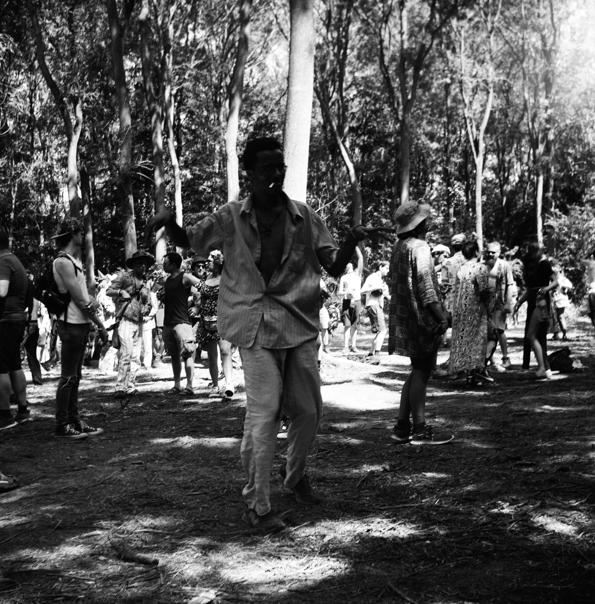 After taking photos at the front of one of the stages I weaved my way back through the crowd, in doing so I received a rather firm tap on the shoulder. Spinning around I was greeted by a gentleman who I at once assumed was one of the professional photographers hired by the festival. He had two digital cameras with enormous lenses strapped across his body like a suit of armor. I thought maybe he was there to tell me that only authorized members with press passes were allowed to photograph the festival, but of course he wasn’t. He pointed down at my 1980’s analogue camera and with a furrowed brow looked back at me and planted a solid thumbs up in the space between us, “That’s old-school, keep it up!” For a brief moment, the two worlds of photography, digital and analogue, had met for a pit-stop of appreciation amongst the dancers, we exchanged pleasantries before weaving off in separate directions back into the crowd.