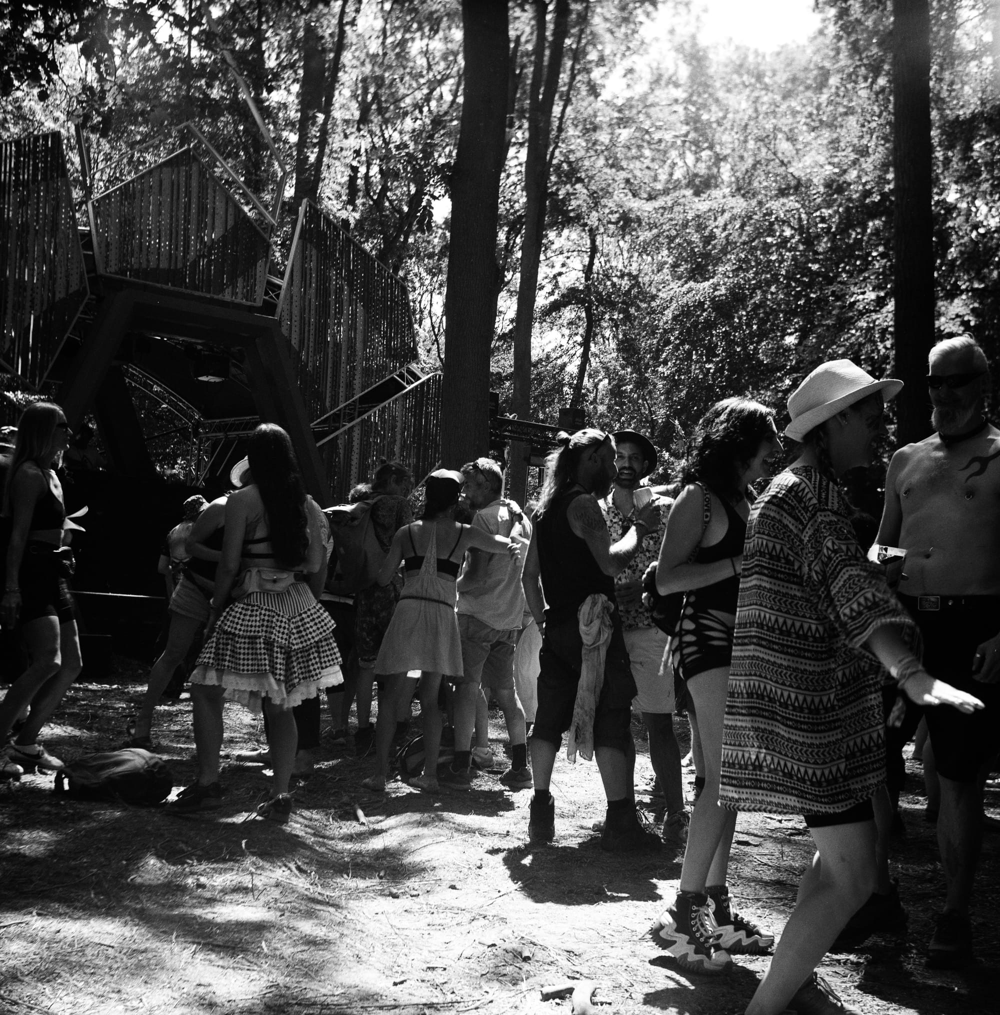 When it comes to shooting film, there is no such thing as too much hassle, you’ve already opted out of convenience, so you might as well be prepared to take your clunky camera and a box of film with you anywhere. In my case, Noisily festival! Set in the heart of Leicestershire, this British woodland festival is the love child of electronic dance music and Mother Nature. Over the course of a long weekend, our feet flirt with the dusty forest floor as the deep bass, pumped out from wooden stages, ignites the senses of people that have come from all over the world. I have been to this festival four years in a row now and I can honestly say I’ve never met such a creative and welcoming community. Having received my first medium format camera earlier in the week, I figured that this festival would be its perfect initiation.
