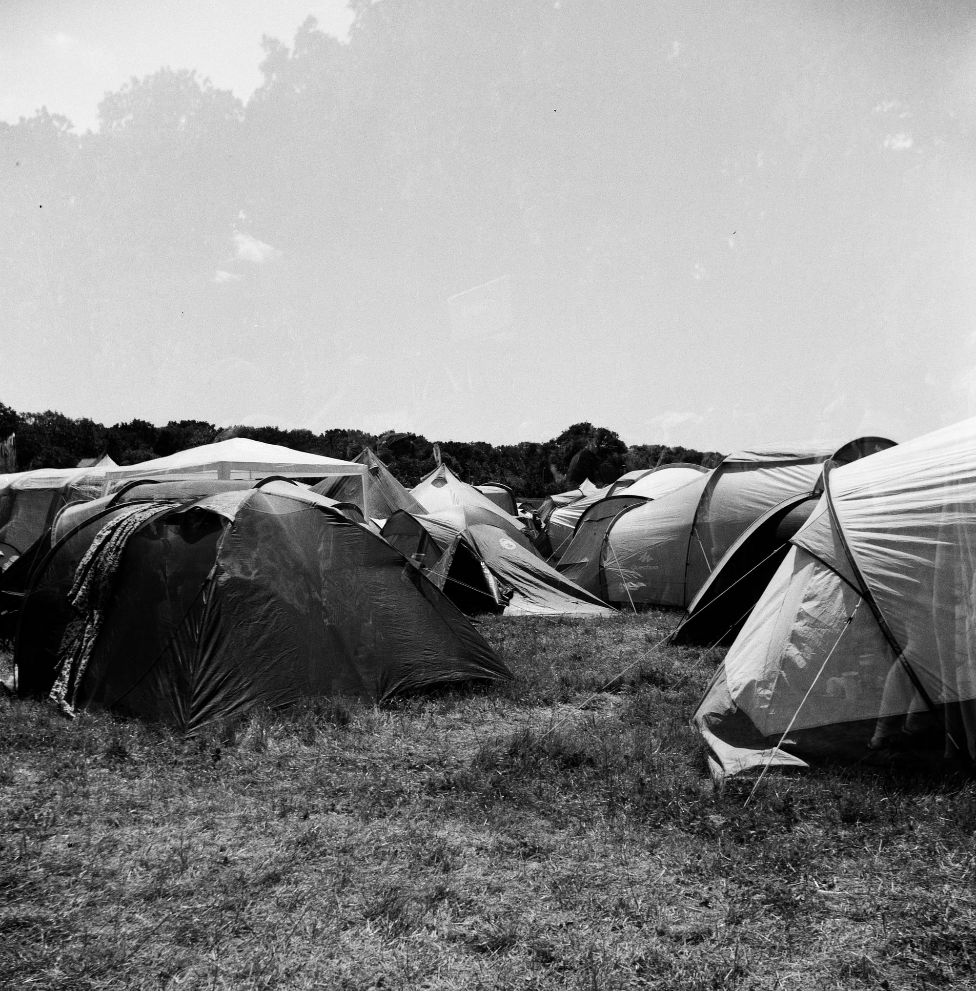My first hurdle would be how I was going to store my film, black and white film should to be stored under a 20°c, this is because when kept at higher temperatures the film can deteriorate and the quality of the pictures will be effected. Some people even keep their film in the fridge to protect its longevity. However, we all know how hot it can get inside a tent and I was not going to have access to a fridge. I had to be resourceful, what I did have access to was a couple packs of cold lager. So I wedged my box of expired FP4 in between the cans and put an old hippy blanket over the top to shield it from as much light and dust as possible, this did the trick quite nicely.