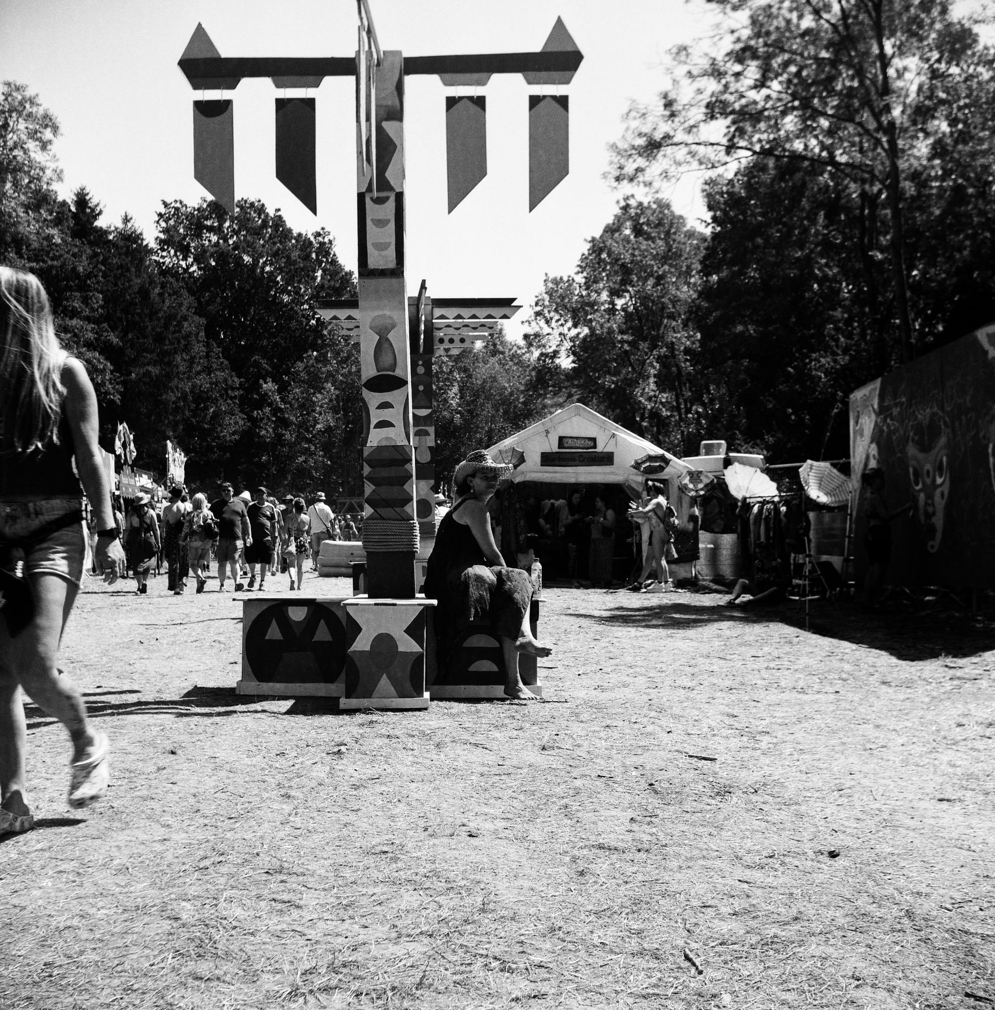 Heading back out into the, ever so slightly, calmer areas of the festival I reverted back to picking out smaller details of the environment. I’m convinced that you can’t find better clothes than the ones within festival markets and I always enjoy daydreaming my way around the stalls flicking my hands through a plethora of fabrics. Another small envelope of peace in such an intense environment can be tucking yourself away somewhere quiet and people watching, an idea this lady and I had in common.